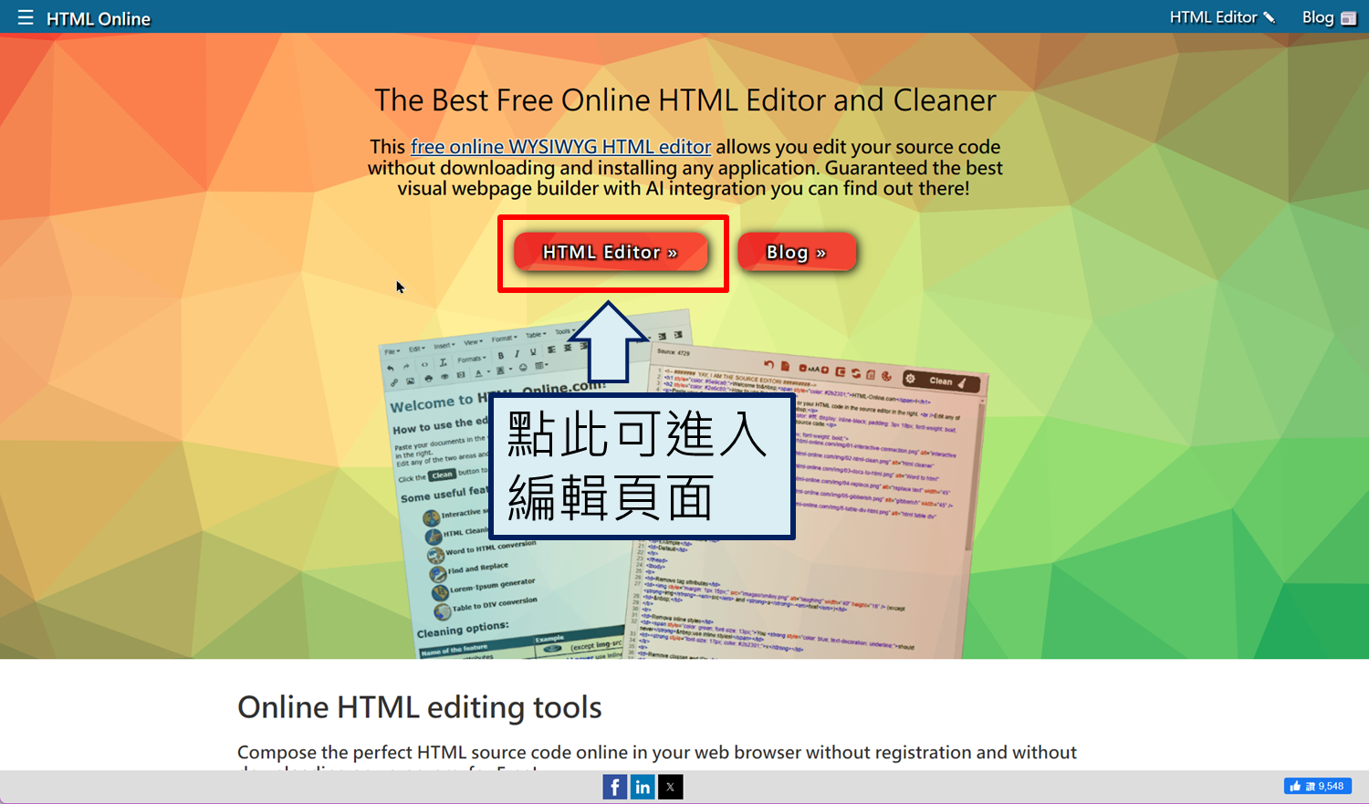 3.若您熟悉 HTML 語法,可直接貼上編輯好的語法; 若不熟悉,可以使用語法編輯工具,例如編輯頁面右上方有提供兩個線上簡易編輯工具的連結